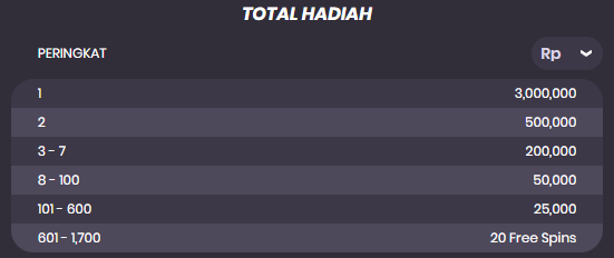3. Turnamen harian akan berlangsung dari 19:00 hingga 23:59 WIB, dengan 15,000 hadiah harian senilai Rp 2,600,000,000. Akan ada 16 turnamen selama periode promosi.
